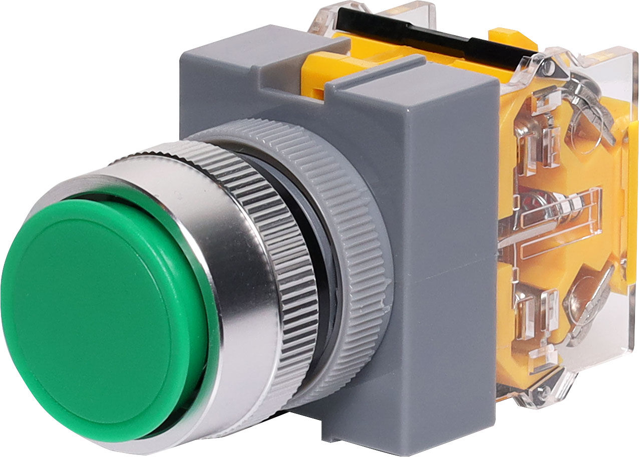 This Heavy Duty Green 22mm Momentary Push Button Switch activates only while pressed and returns to its original position when released, unlike a "latching" switch which stays in the pressed position. It’s ideal for applications requiring temporary control, such as machinery start/stop functions. The bold green button provides clear visibility, while the rugged construction ensures durability under heavy use.