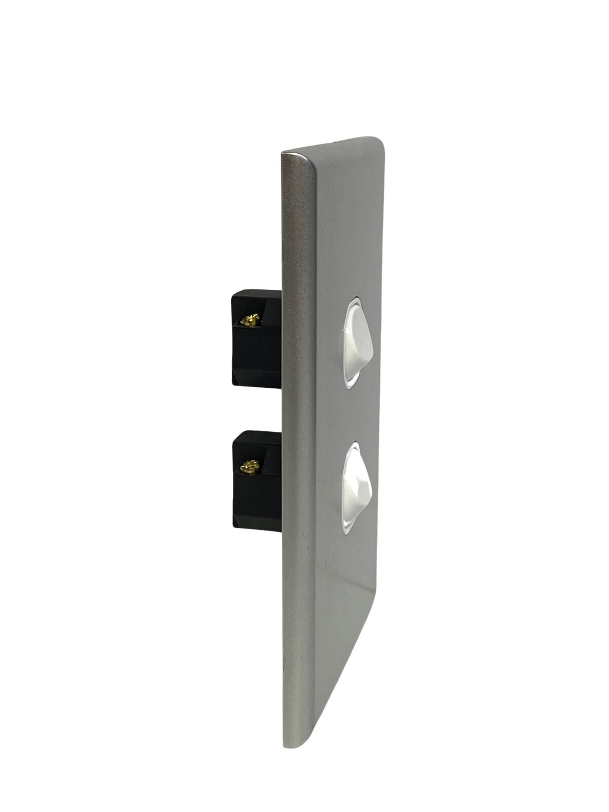Slim Vertical Single 2 Gang Wall Plate Light Switch - White & Silver