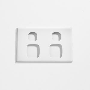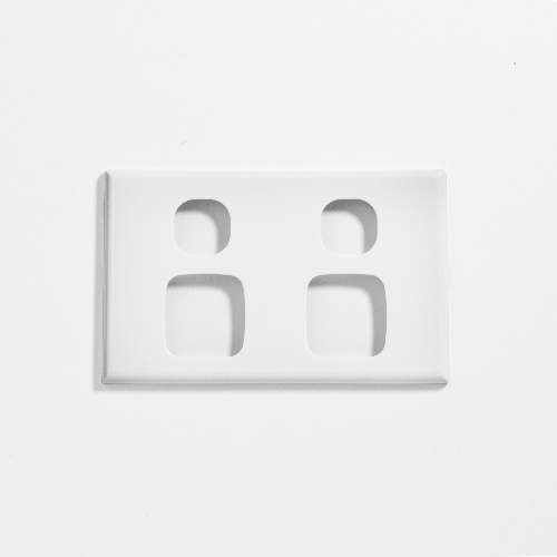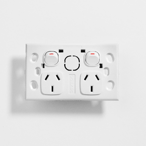 A 5mm slimline 10A Horizontal Double GPO Power Point with an integrated on and off switches.