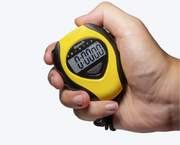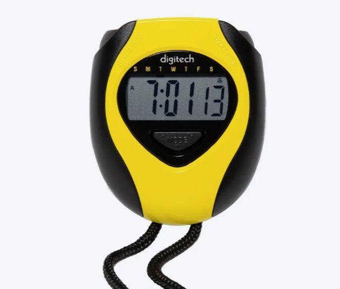 This handy 1/100th of a second sports timer will be a useful addition to any sports bag. Not only does it measure elapsed time for up to 24hrs, our water resistant stopwatch has a split time (Lap) function as well as alarm and calendar functions.