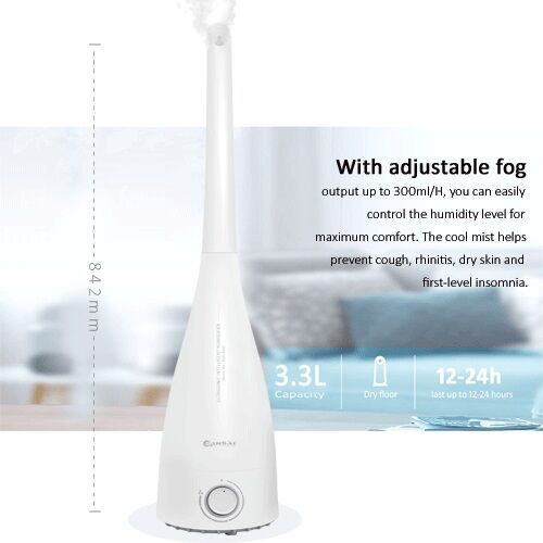 • Ultrasonic Cool Mist increases air moisture for easier breathing and a good night’s sleep