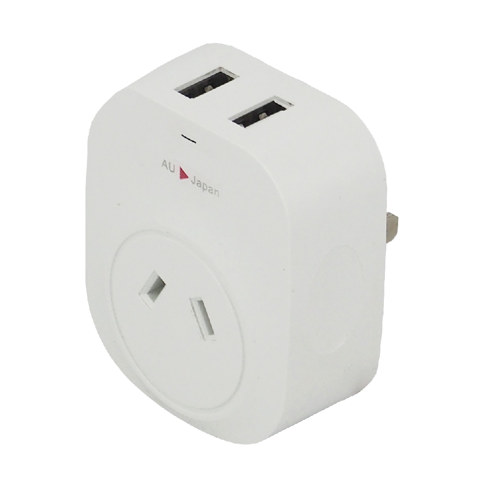 This outbound travel adapter allows you to take your Australian appliances and mains powered devices to USA and Japan and be able to plug directly to US or Japanese Mains Power Sockets and Outlets. It features surge protection to protect your devices and also integrates two USB Charging Ports on top for charging USB devices such as smartphones, tablets, etc.