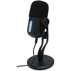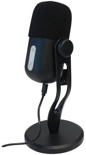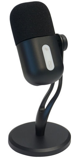 Podcast microphone with desk stand. USB audio with headphone 3.5mm output socket. Condenser microphone. Unlta-HD 24bit 16bit 48KHz. USB-C 1.5m cable. Volume control. 100x100x220mm