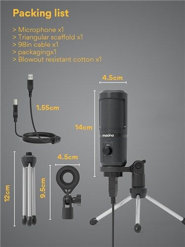 USB Gaming Microphone with Mic Gain Control with Tripod Desk Stand