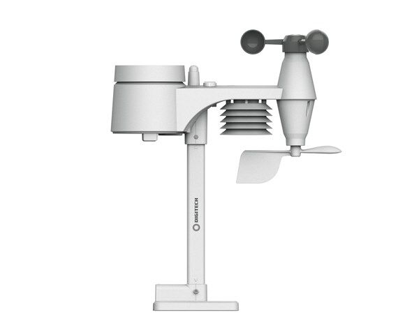 The wireless 5-in-1 sensor contains a self-emptying rain collector for measuring rainfall, anemometer, wind vane, temperature and humidity sensors. It is fully assembled and calibrated for easy installation. It sends data by a low power radio frequency 917MHz band to the main display unit up to 150m away (line of sight).