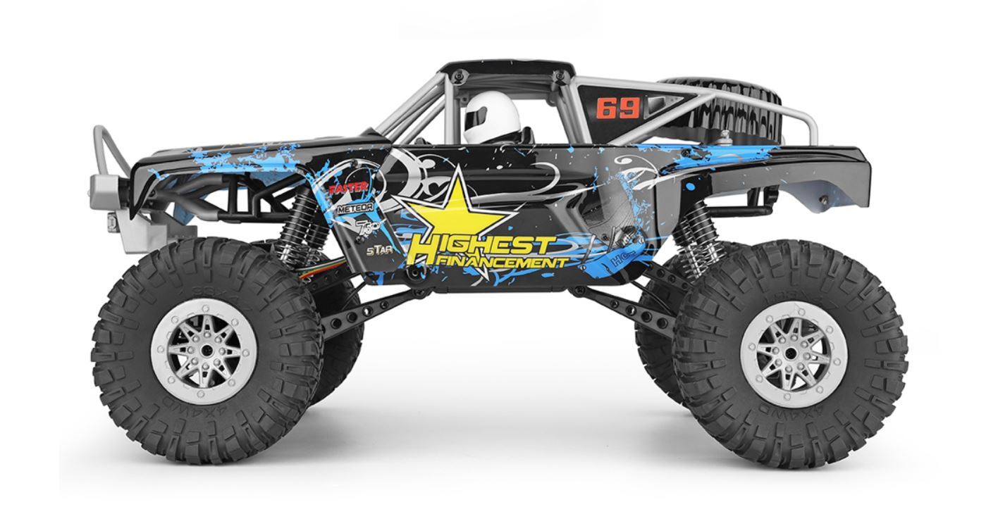 This WL Toys 104310 remote control Rock Crawler RC Truck can go over any terrain and even climb rocks. The lightweight body and high wheel clearance of this Remote control Rock Crawler allows it to drive on uneven surfaces and climb obstacles up to 45 degrees in incline. With its big capacity battery, it offers over 20 minutes of play time.